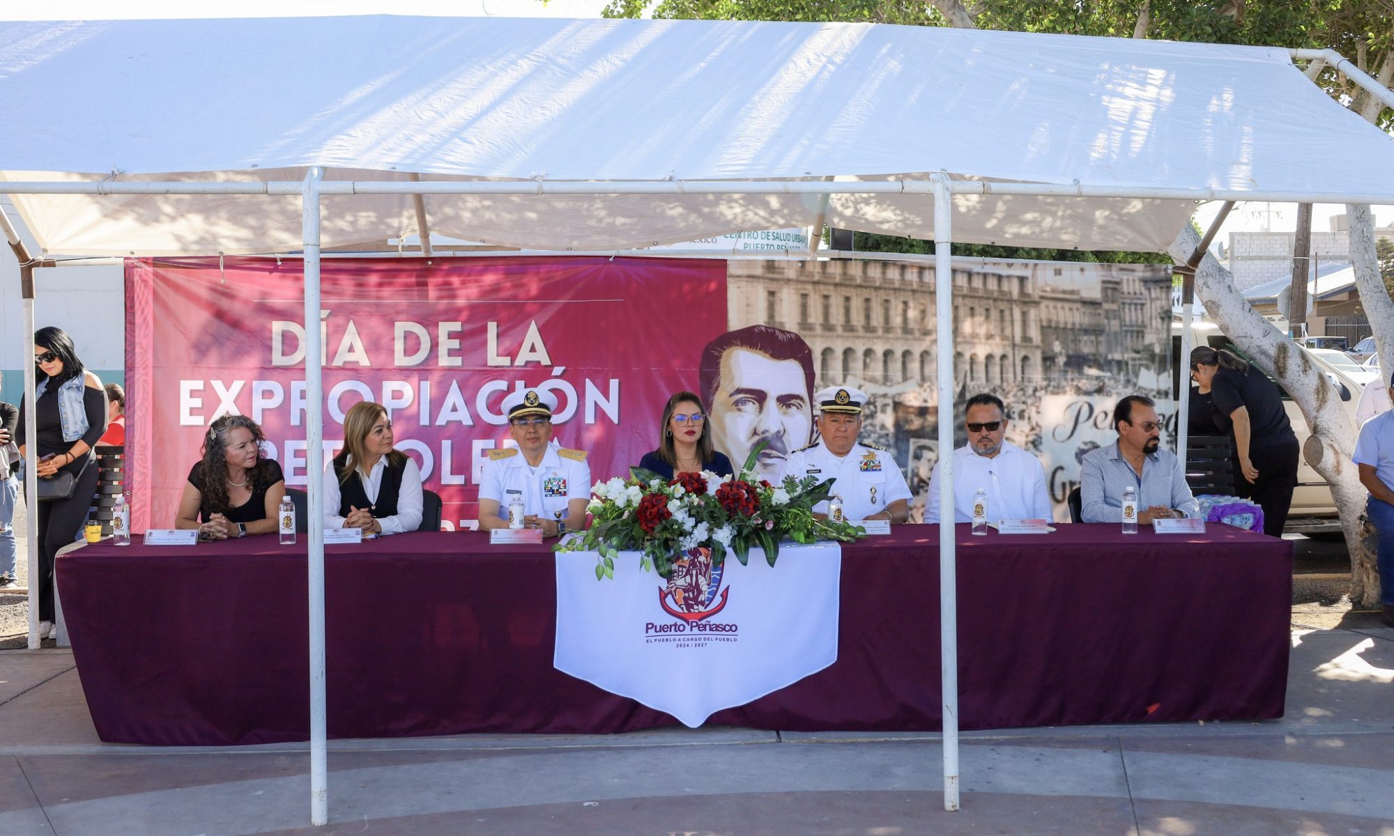 El evento cívico estuvo presidido la Secretaria Municipal Lic. Dalia Saray Moncada, en representación del presidente municipal Alejandro Verdugo acompañada del CGDEM Vicealmirante de la VI Zona Naval Luis Lázaro Cornejo Olivares, el Capitán de Puerto Adonay Sandoval Medina, el delegado de la SEC, Cristino Luna Javalera en representación del titular de la SEC Froylán Gámez Gamboa, la Regidora de Educación Maestra Amparo Márquez Sánchez, el Maestro Raúl Méndez Rojas, Director de Desarrollo Social y Económico y la Maestra Gladys Susana Vega Cebreros, Directora del Instituto Municipal de Cultura y Arte.